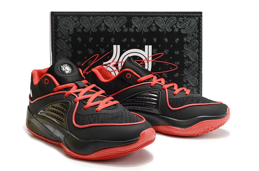 Ознакомьтесь с кроссовками Nike KD 16 в цветах Black/Red — идеальный выбор для тех, кто ценит стиль и производительность на баскетбольной площадке!